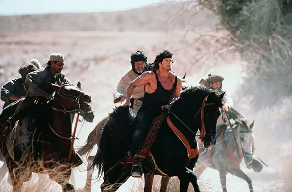 With no support and limited weapons, Rambo turns to guerrilla tactics and the help of the local Afghan fighters. In an explosive series of battles, he uses his knowledge of terrain, traps, and raw determination to even the odds. The film features some of the most iconic action sequences of the series — helicopter dogfights, horseback chases through the desert, and Rambo single-handedly taking on entire Soviet battalions.